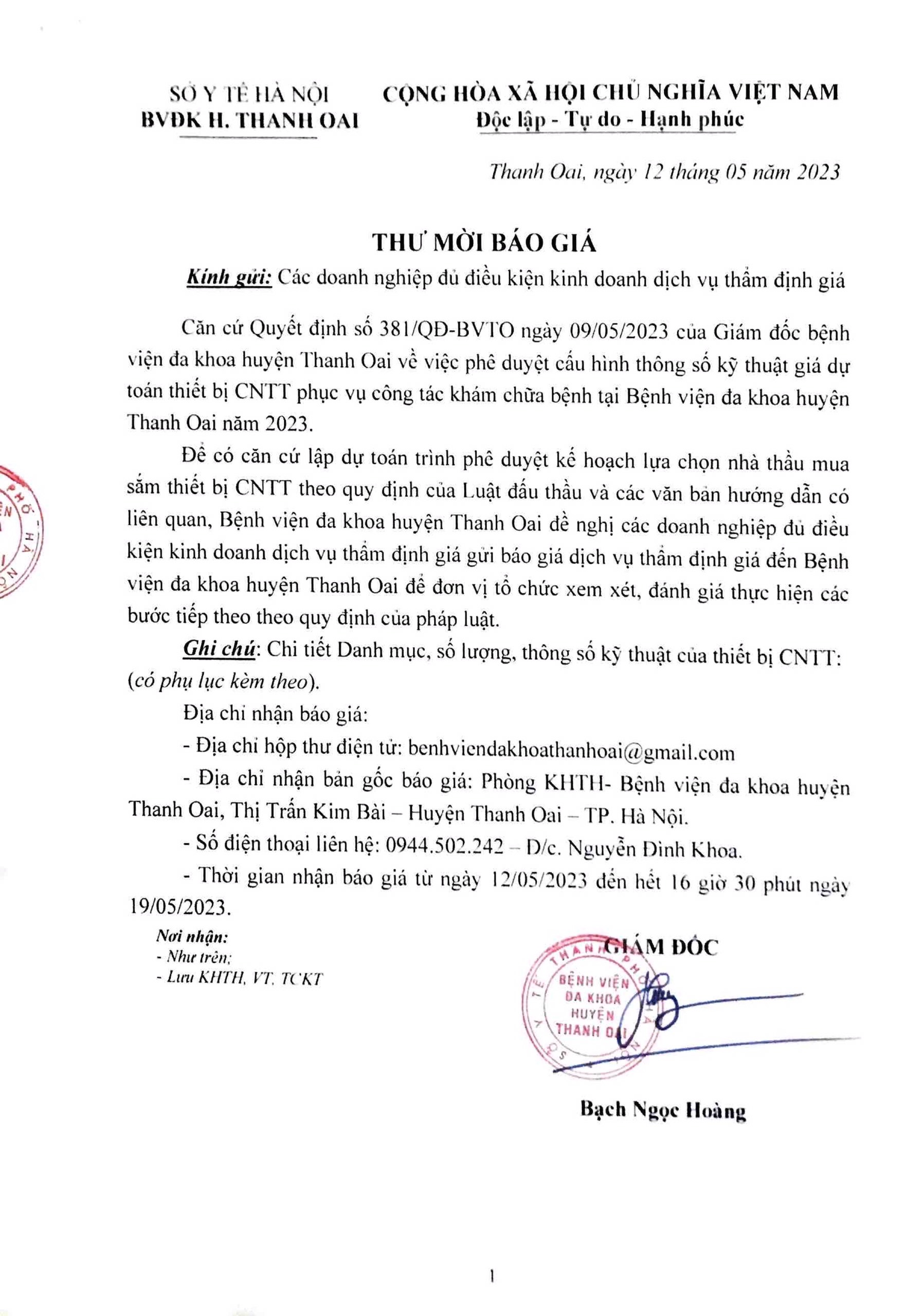 30 Th10 Tin tức Yêu cầu báo giá gói thầu mua sắm bổ sung VTTH phục vu công tác khám chữa bệnh năm 2025-2026 cho Bệnh viện đa khoa Thanh Oai 30/10/2025 Đăng bởi Quản trị Web 0 comments Facebook Twitter Email Pinterest linkedin YCBG VTTH - 2025Xem tiếp